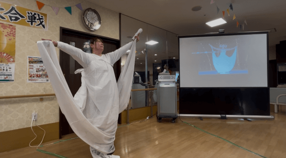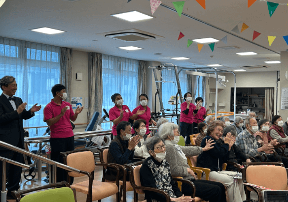 入居者様の飛び入り参加や、司会を務めたスタッフ2人の