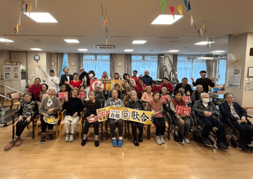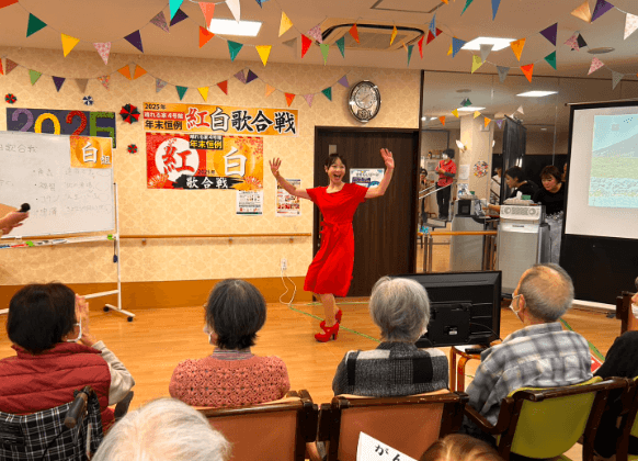 年末恒例の4号館紅白歌合戦を入居者様を招いて今年も開催いたしました。