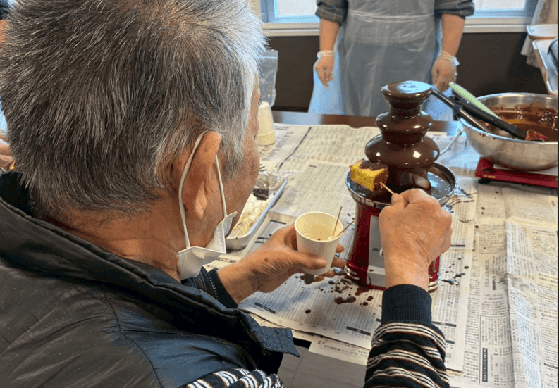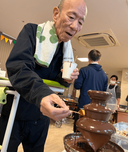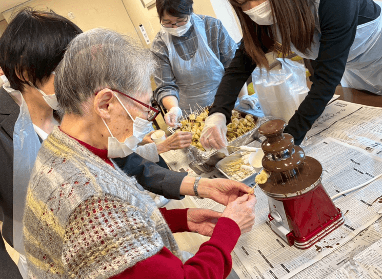 今日はバレンタインイベントで入居者様と