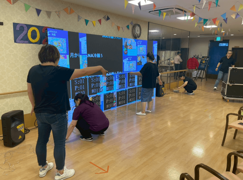 特大LEDスクリーンをレンタルし15時頃から準備と設置が始まりました。