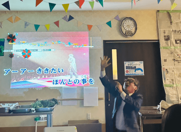 レクリエーションでは紅白に分かれてカラオケバトルを行い、