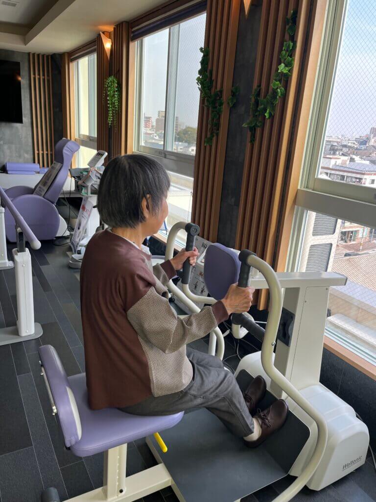 屋上階から見渡しの良い街並みを眺めながら、パーソナルジムのような雰囲気でリハビリに取り組める環境、また体幹や下肢を中心に筋力強化トレーニングが行えるマシンも取り揃えておりますので、個別リハビリ+マシントレーニング、また物理療法機器にてリラクゼーションも図れます。