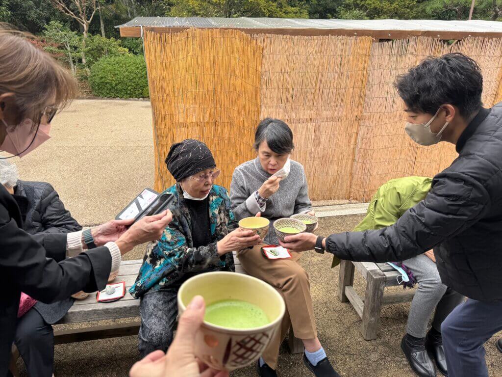 日本庭園を背景にお抹茶をいただき、ご結婚記念の撮影会を楽しみ📷