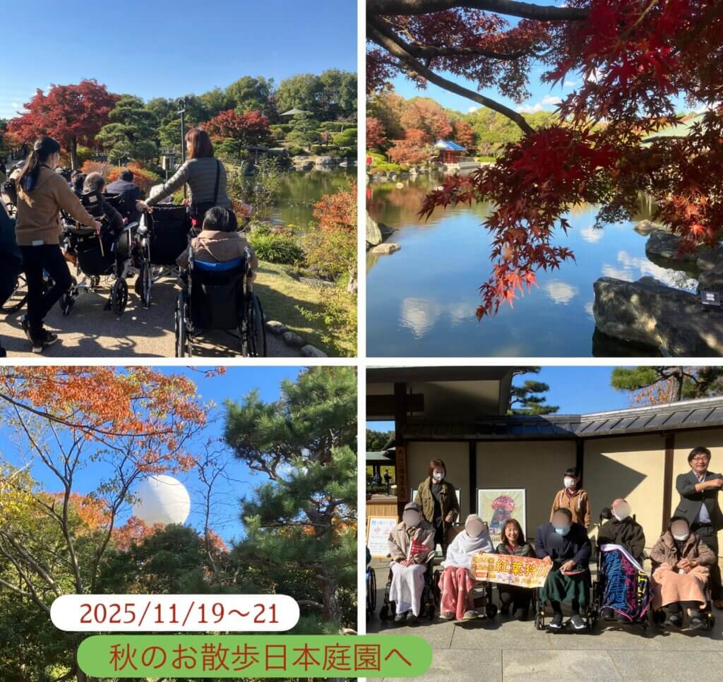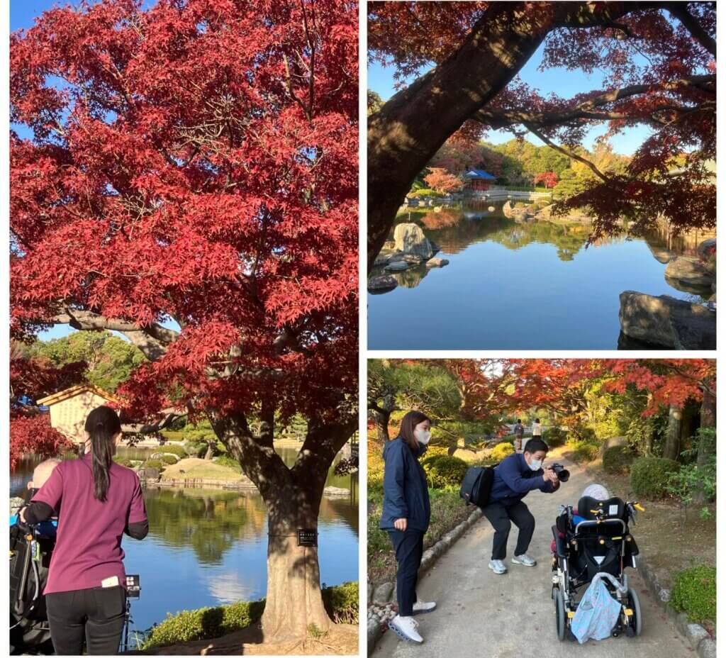 入居者様が、ご家族様やスタッフと共に、大仙公園日本庭園へ