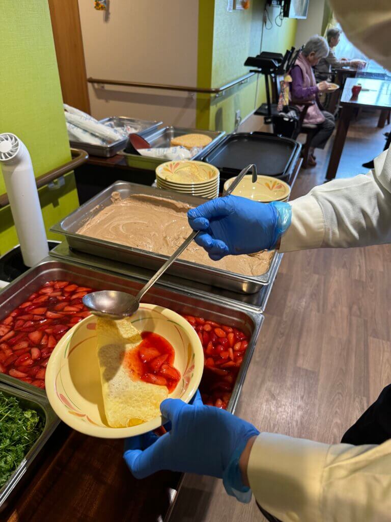 入居者様の目の前でシェフが腕を振るう 目にもお口にも