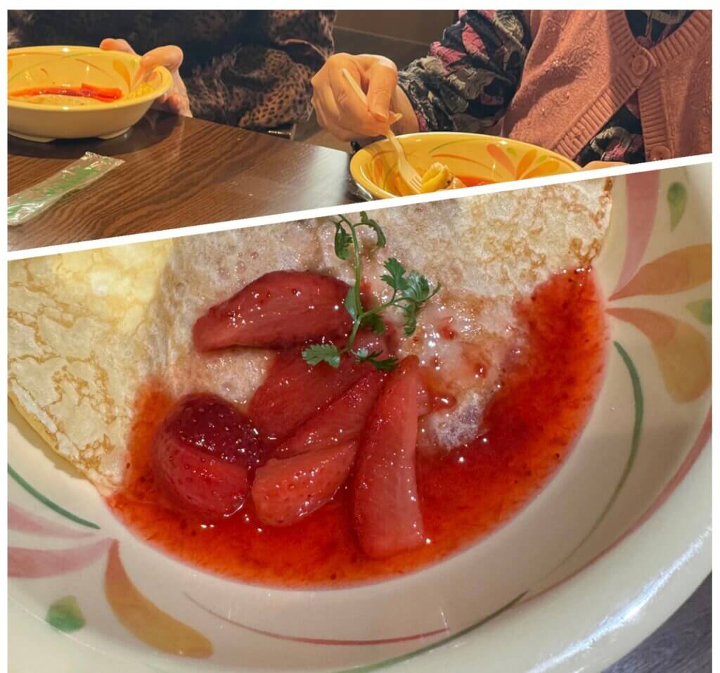 実演 焼きたてクレープ 🍓いちごソースたっぷり🍓