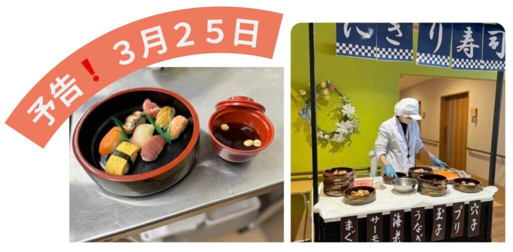 さてさて、予告通り 3月25日「にぎり寿司」寿司職人さんの実演です。
