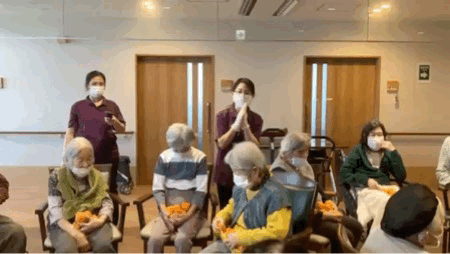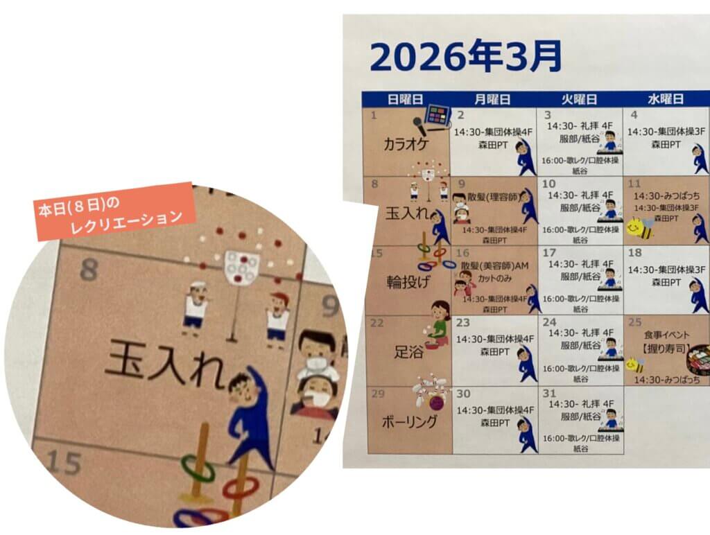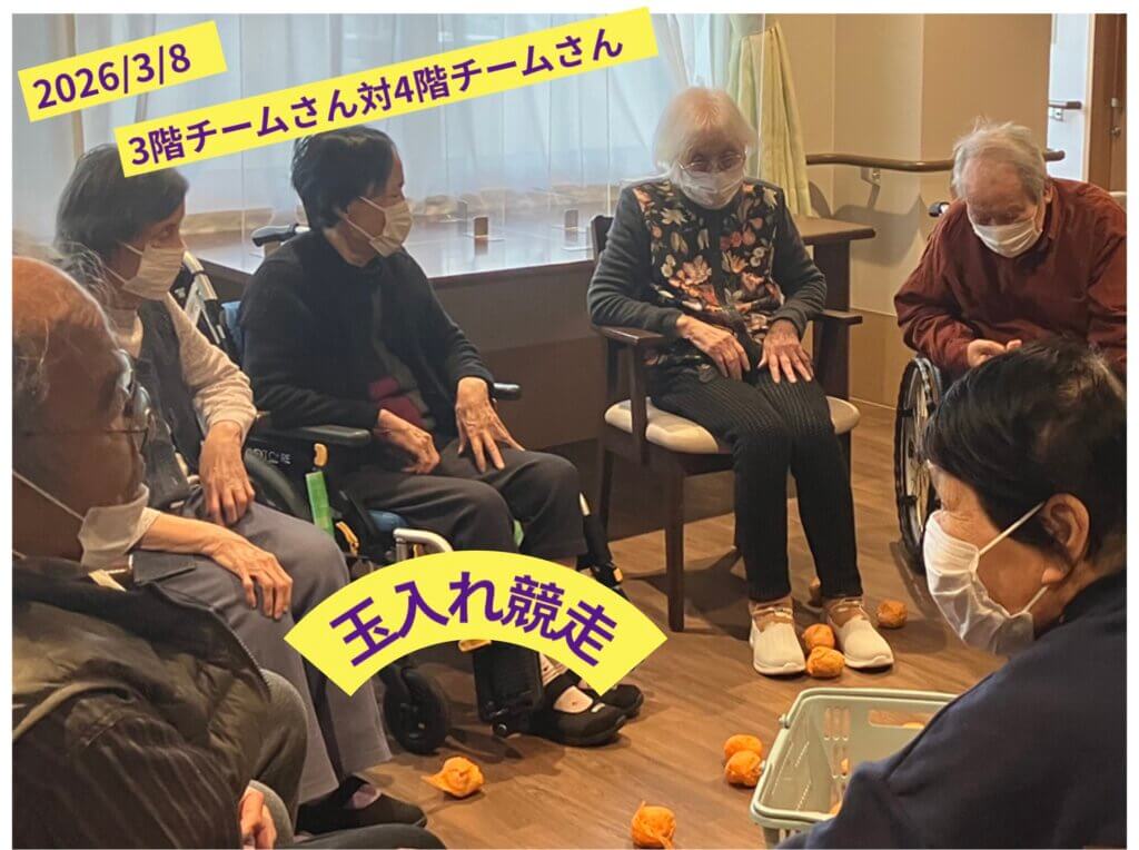 日曜日は介護士さん達とレクを楽しむ日(3/8 玉入れ)