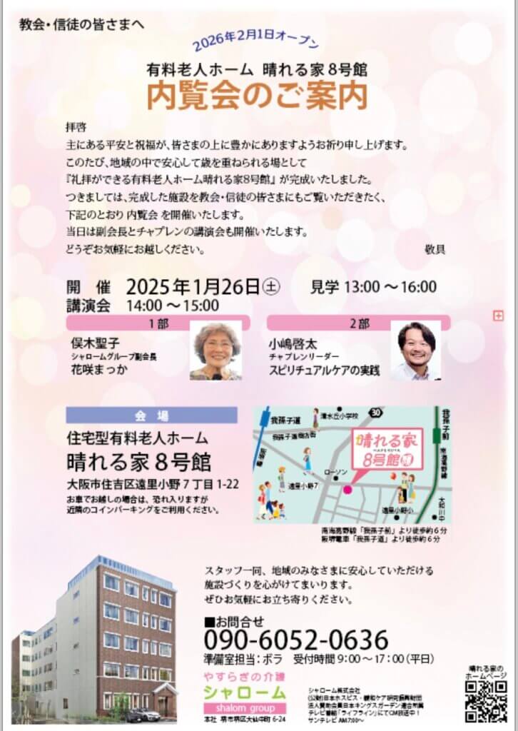 堺市 大阪市 礼拝が出来る施設 チャプレンが在籍する施設 晴れる家 有料老人ホーム
