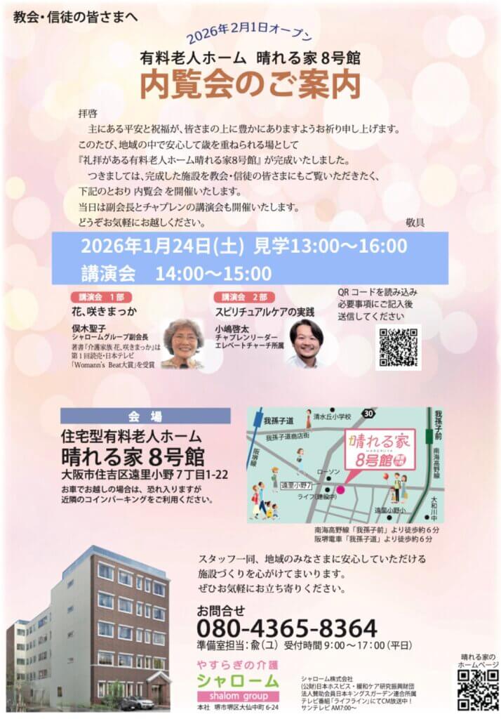 堺市 大阪市 礼拝が出来る施設 チャプレンが在籍する施設 晴れる家 有料老人ホーム