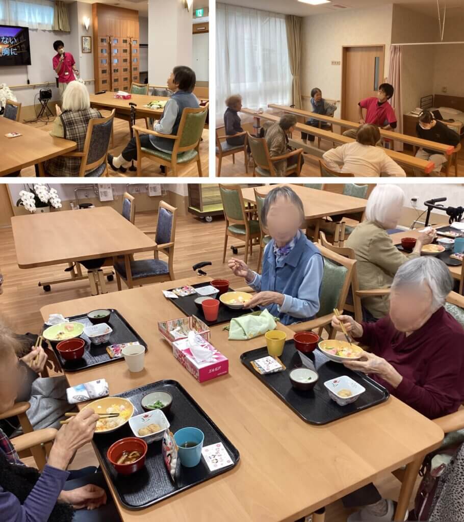 本日のデイのお食事風景は、何年も前からのお友達の様な