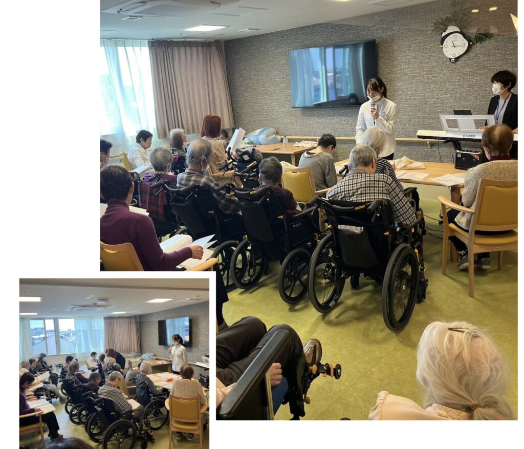 週に1回の礼拝の時間。今日はご入居者様とご家族様あわせて20名がご参加くださいました。