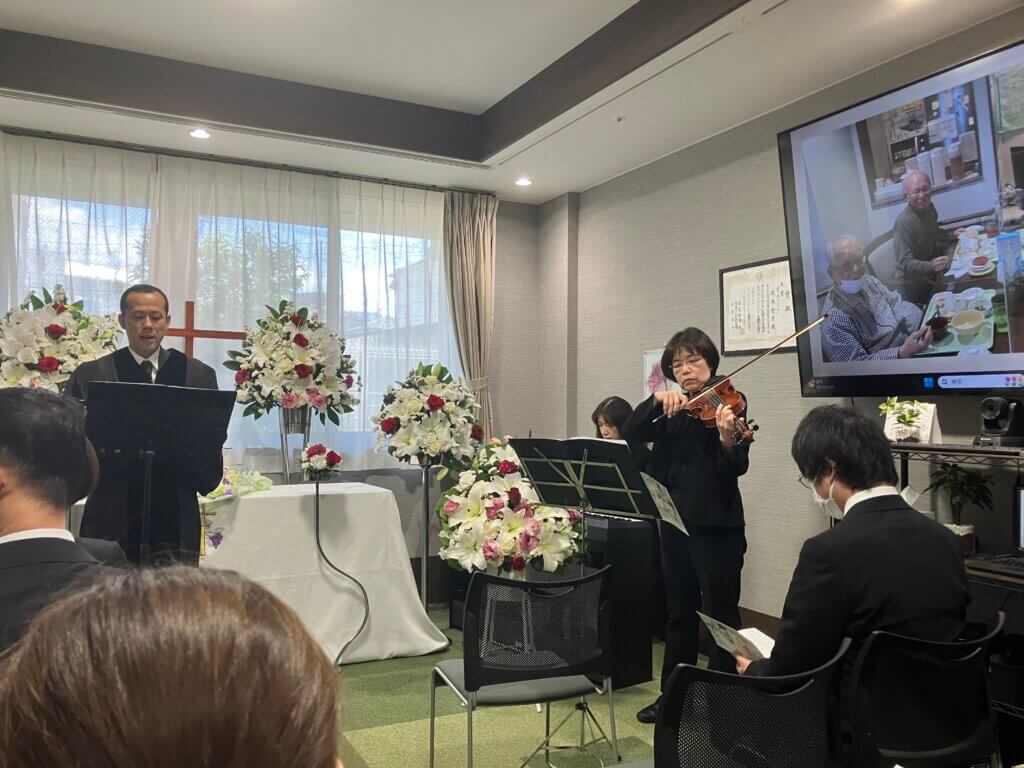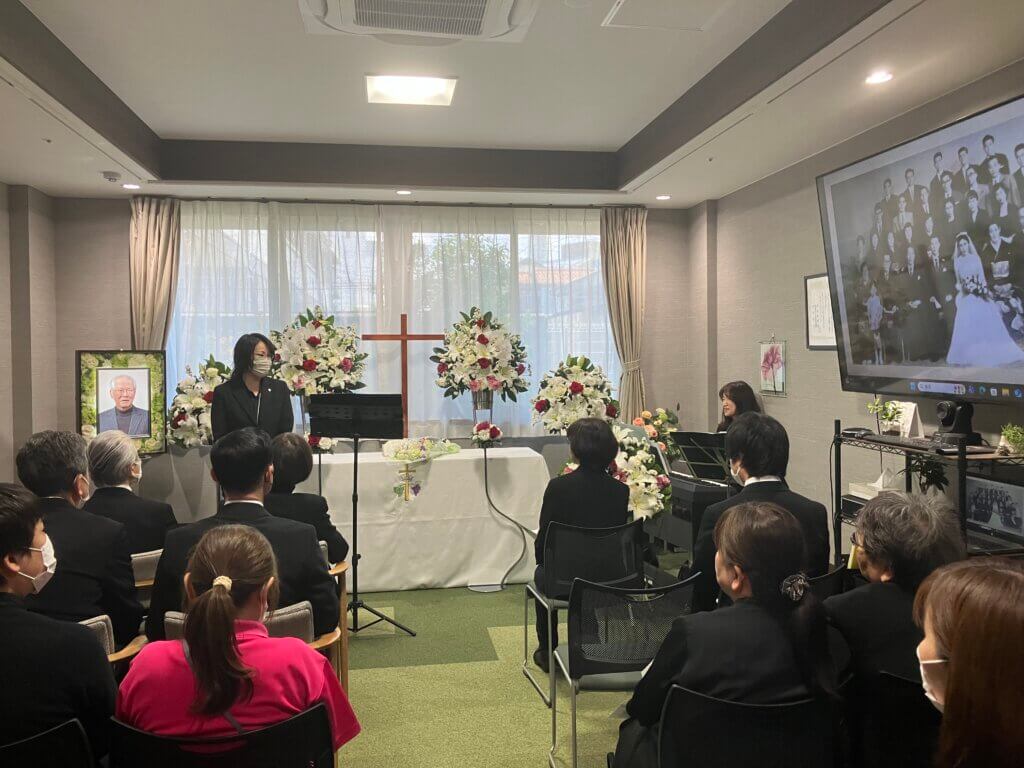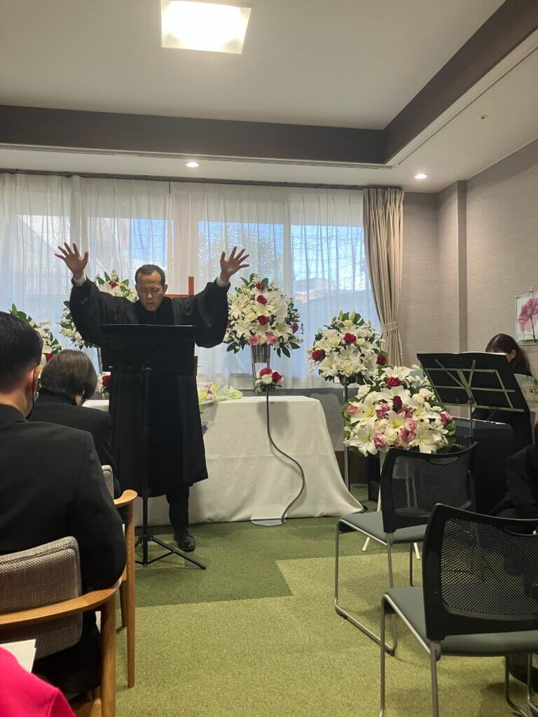 お世話になられた牧師様の祈りのもと、ご家族、スタッフともに賛美し、