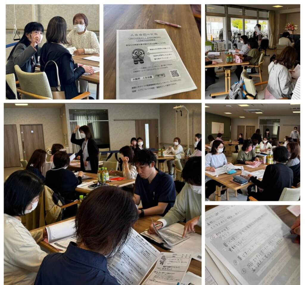 大阪府や堺市、また医療機関から出されているエンディングノートを参考に、これまで私たちが関わってきたケースや施設ならではの視点を持ち寄り、グループワークを行いました。