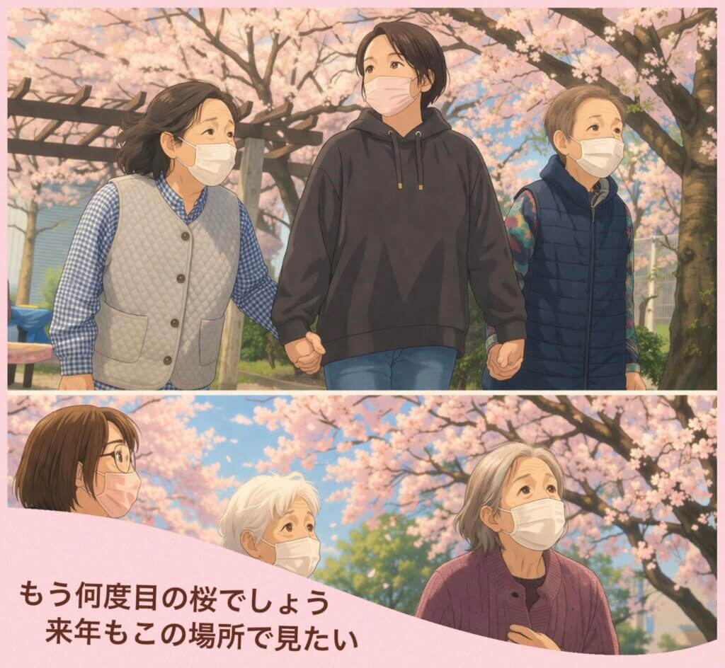 桜をきっかけに思い出を語られる場面もあり、認知面への良い刺激や安心感にもつながりました。
