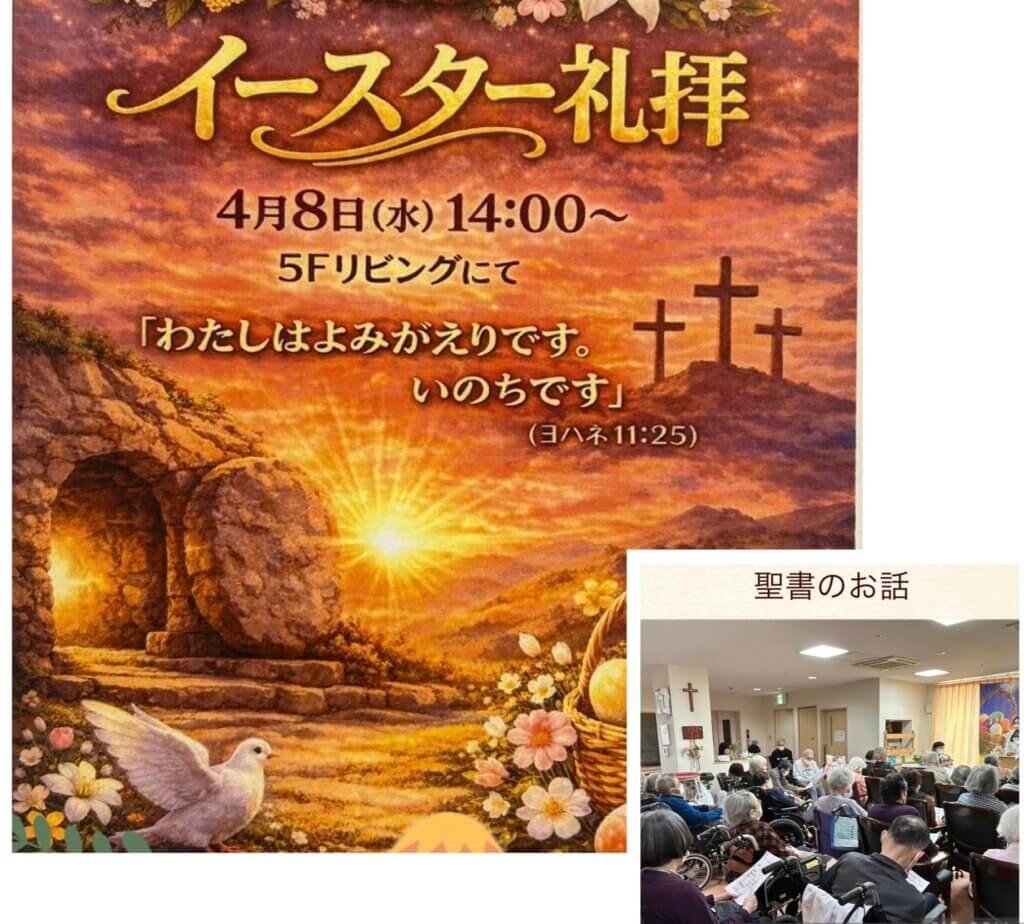 入居者様、家族様、スタッフ、そしてチャプレンが心を合わせて過ごしたイースター。